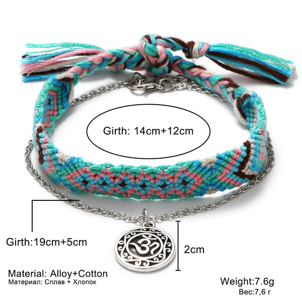 Item Type: AnkletsLength: 14cm+12cmMetals Type: Zinc AlloyMaterial: CottonColor: Silver