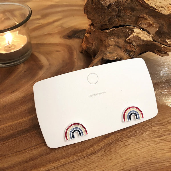 2019 Sweet Cute S925 Sterling Silver Rainbow Stud Earrings