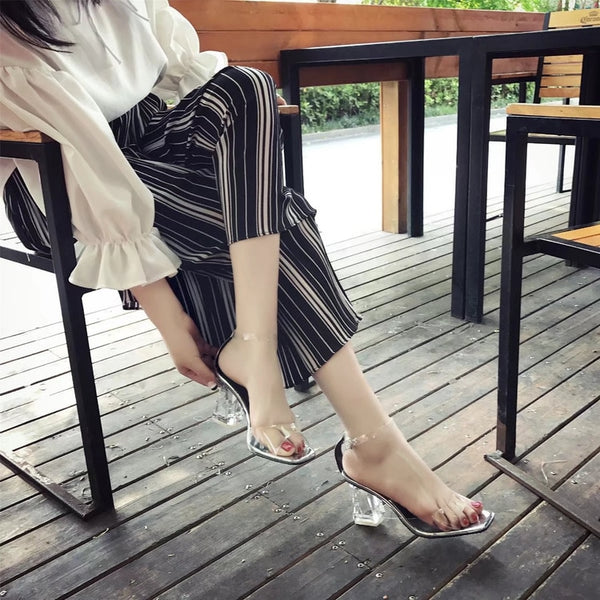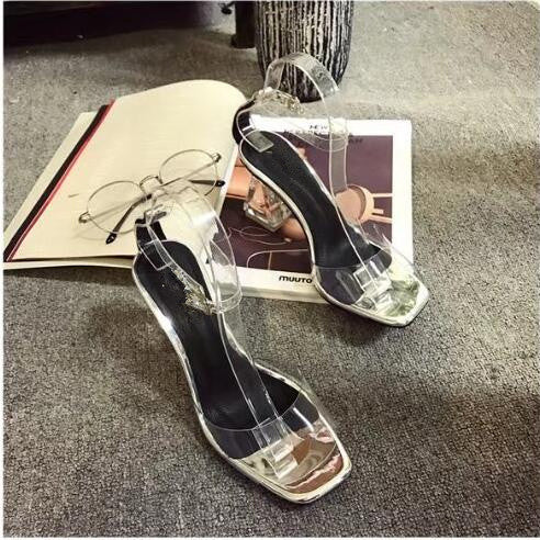 2019 Must have Cinderella Crystal Sandals /Transparent Peep Toe Thick Heels