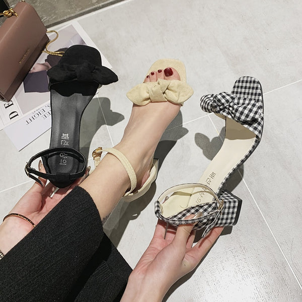Upper Material: Cotton FabricSandal Type: Ankle StrapOutsole Material: RubberInsole Material: RubberPattern Type: PlaidHeel Height: Med (3cm-5cm)