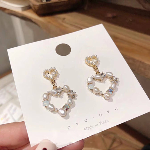 2019 Made in Korea Elegant Simulated Pearl Heart Drop Earrings