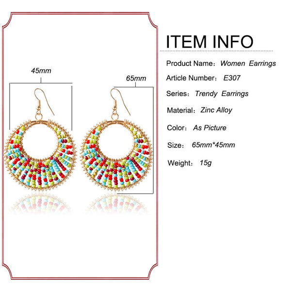 Bohemia style retro exaggerated color beads Pendant Earrings