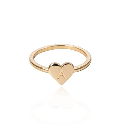 (Initial rings) Simple Metal Gold 26 Letters Love Heart Finger Rings